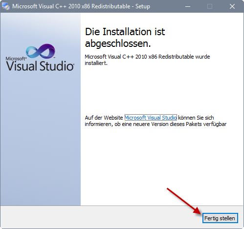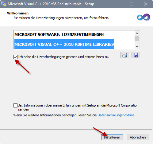 Zum Starten der Installation führen Sie bitte die Datei vcredist_x86.exe aus.