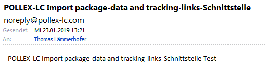 Protokoll-Email | E-Mail-Adresse(n) für Protokollierung. Mehrere Adressen können Semikolon-getrennt angegeben werden. | In diesem Feld können Sie eine oder mehrere Protokoll-E-Mail-Adresse(n) angeben. Wird ein Import durchgeführt wird dies immer protokolliert und an die eingetragene(n) Adresse(n) versandt. Mit dem Die Test-E-Mail sieht wie folgt aus: