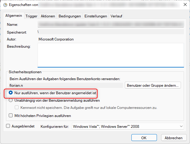 Über die Windows Aufgabenplanung lässt sich der Rechnungsbatch aktuell nur ausführen, wenn in den allgemeinen Eigenschaften "Nur ausführen, wenn Benutzer angemeldet ist" verwendet wird. Damit ist es auch notwendig, das der Benutzer nicht abgemeldet wird.