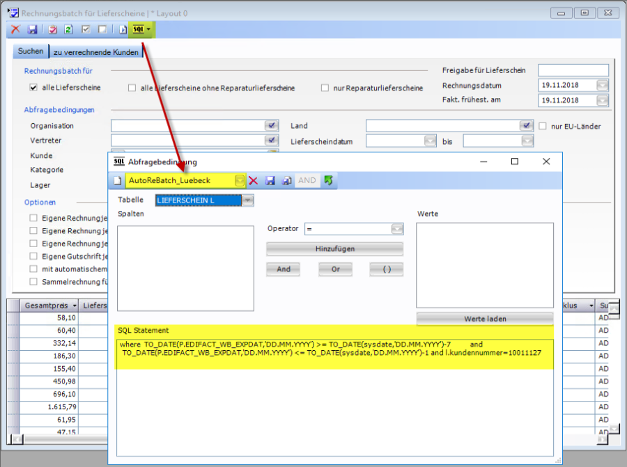 Query | Gespeicherte SQL Abfragebedingung im Rechnungsbatch |