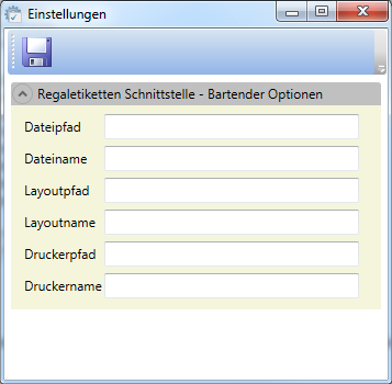| Einstellungen | Mit Einstellungen wird das Einstellungen-Fenster geöffnet in welchen die Grundeinstellungen für den Aufruf des Etikettendruckers eingestellt werden. |