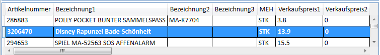 Datensatz löschen: Ein Datensatz kann durch auswählen dieses und anschließenden drücken auf die [Entf] Taste gelöscht werden und wird nicht als Etikett ausgegeben.
