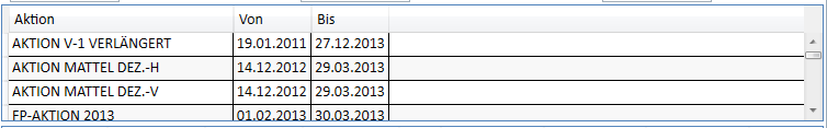 Aktionsauswahl: Die Datensätze einer Aktion können durch Doppelklick auf die entsprechende Aktion ausgewählt werden